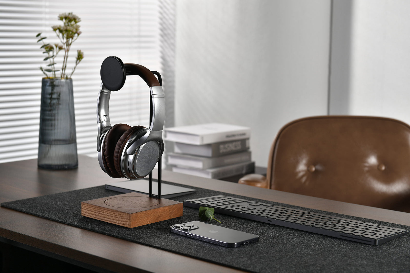 Keep your headphones safe and accessible. The headphone holder cradles your headphones securely, preventing them from getting tangled or damaged.