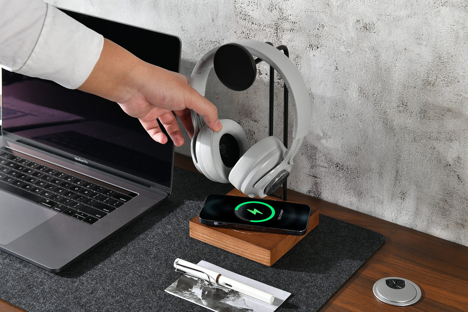 Elevate your headphone storage and charging experience with our Modern Minimalistic Ashwood Headphone Holder featuring built-in wireless charging. Crafted with precision from luxurious Ashwood, this stylish headphone holder not only keeps your headphones within easy reach but also ensures they're always ready to go with the convenience of wireless charging.