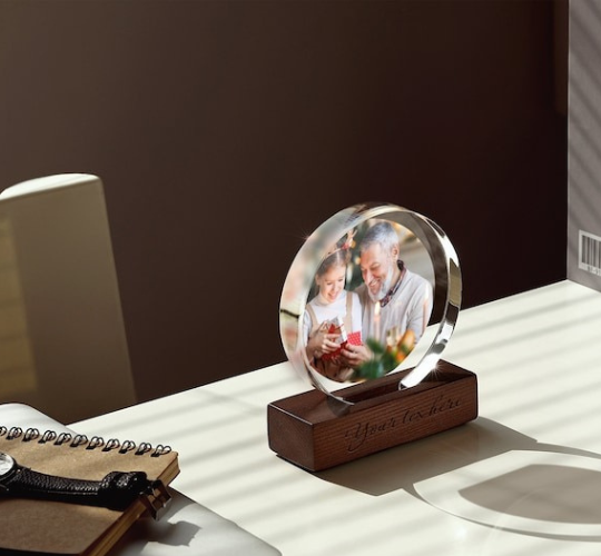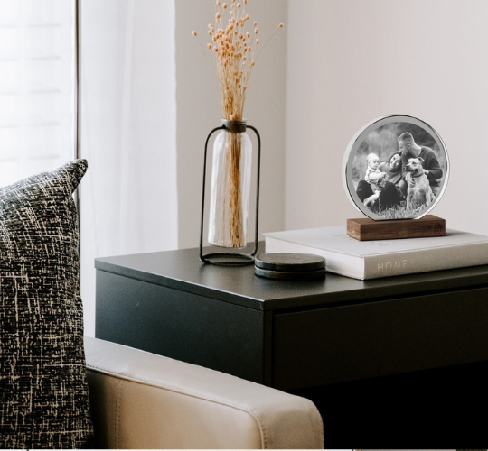 Whether for a loved one or yourself, this Round Acrylic Picture Frame with Ash Wood Base makes for a thoughtful and memorable gift that preserves moments in a truly artistic manner.