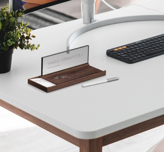 Add a touch of personalization to your workspace with custom engraving. From your name to your title, this nameplate becomes a statement piece that represents your professional persona within the corporate world.