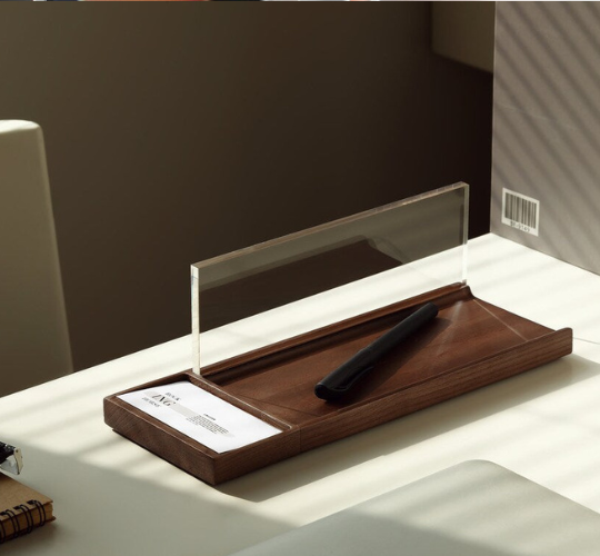 Crafted from high-quality ACRYLIC and WOOD, this nameplate showcases a sleek and sophisticated design. The clarity of the acrylic paired with the warmth of the wood creates a striking balance that resonates with both modern and traditional office spaces.